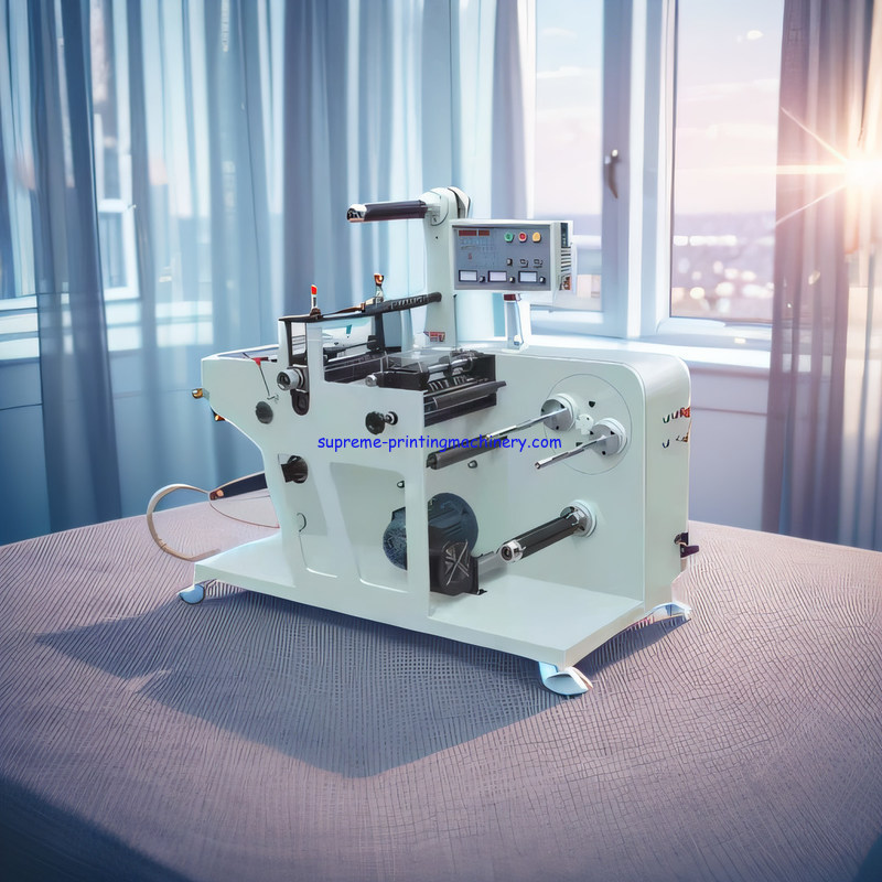 Supreme MQ-320-Y MQ-320-Y ADHESIVE LABEL PAPER PROCESS MACHINERY WITH UNWINDING MAX DIAMETER 500MM DIE CUTTING AND SLITTING ROTARY TURRET is a standard and custom automated rotary die-cutting machine. Our precision die-cutting machines provide accuracy that is perfect for plain label production. Our machines are suitable for all kinds of adhesive label papers, film, and paper materials. They are equipped with a strong unwinding system, full servo operation(optional), and a quick change die-cutting station.